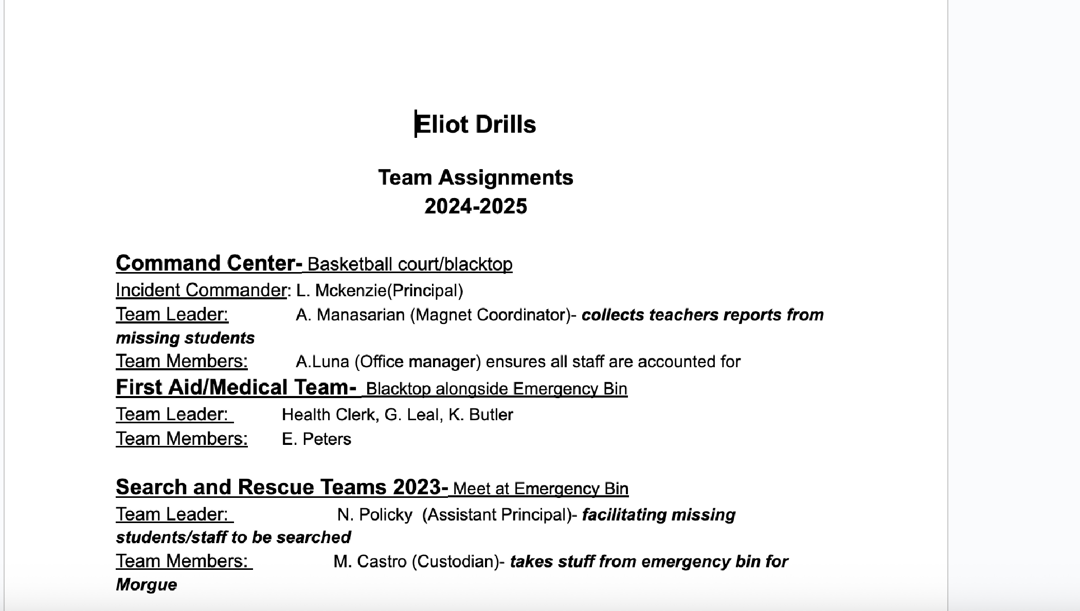 This is what was used at our site for Disaster Drills that outlined what each person's role was for disasters.